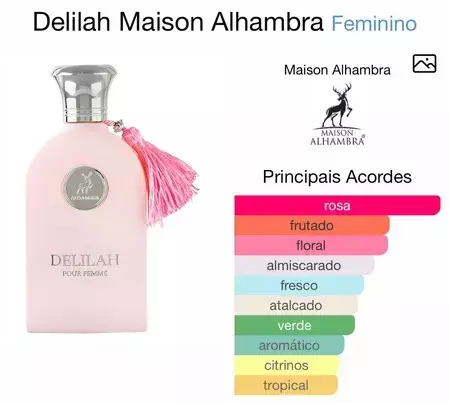 Delilah é uma fragrância feminina que combina sofisticação e feminilidade de forma envolvente. A composição parte de uma abertura frutada-vibrante para, em seguida, evoluir para um buquê floral elegante, finalizando com uma base quente e sedutora.